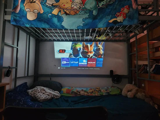 Any light-colored wall works perfectly! No special screen required. The auto-adjustment technology optimizes the display on any surface. Projects up to 130 inches.
